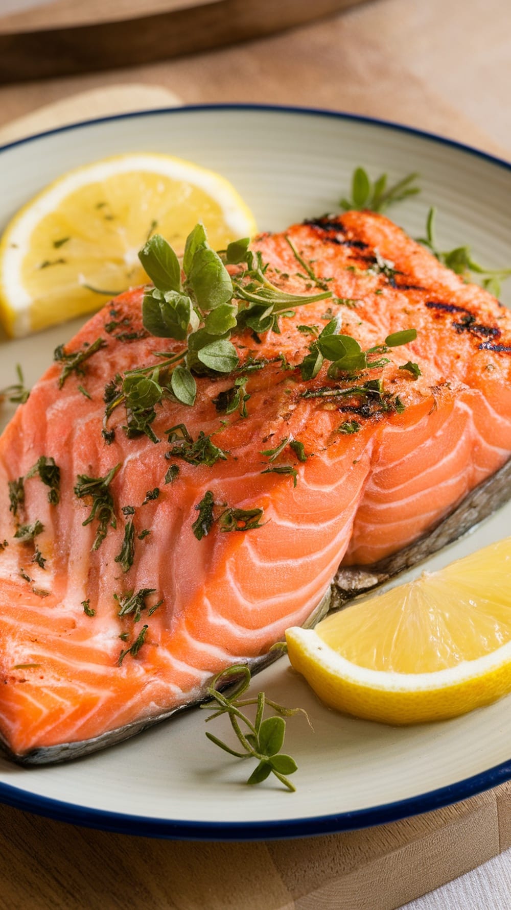 Serve your grilled lemon herb salmon with a side of fresh salad or steamed vegetables for a complete meal.